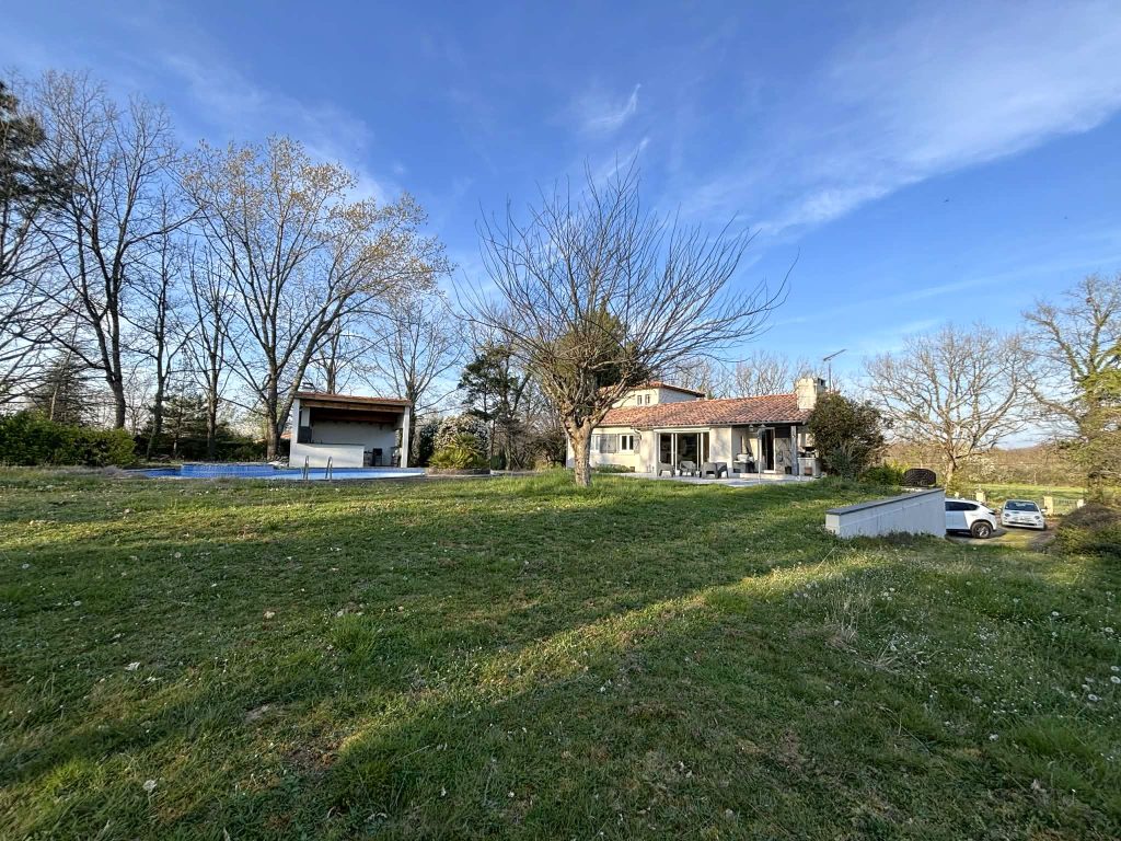 À l’extérieur, le grand jardin boisé partiellement clôturé, agrémenté d’une piscine et de son pool house, constitue un cadre parfait pour profiter pleinement des journées d’été.